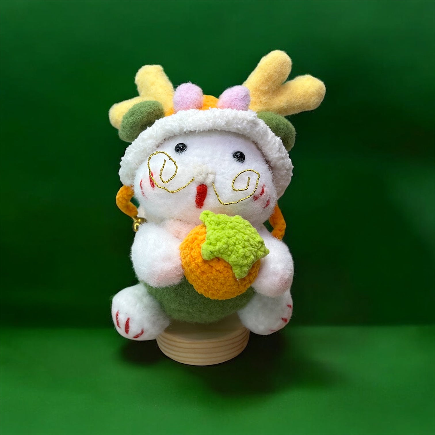 Discover the playful Dragon Friend with Magnetic Head K0607, a charming white dragon with bright green accents. This whimsical companion holds a vibrant orange and wears a removable beanie adorned with jingling bells, adding a touch of fun and personality. Its magnetic head lets you pose it any way you like, making it the perfect playful buddy for dragon fans and collectors!